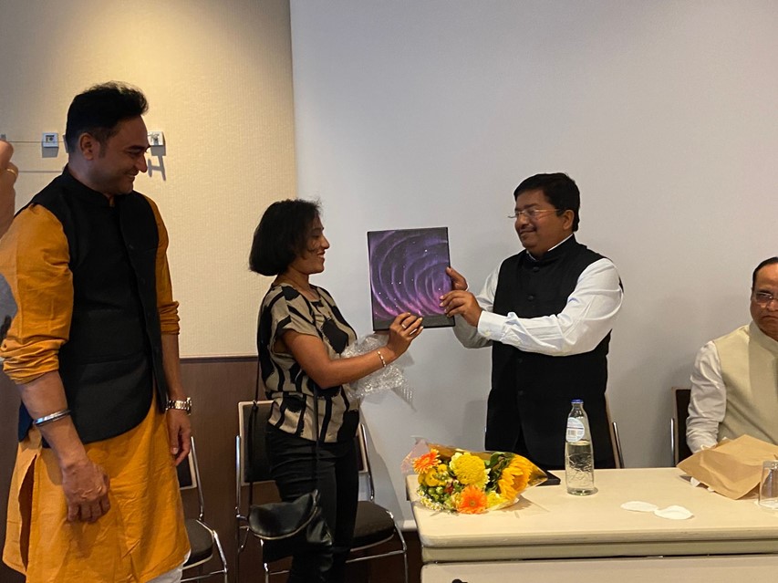 • Maujart presented signature aurora artwork to honourable Minister of  Cooperation Atanu Sabyasachi Nayak, who was on a visit to Belgium, to attend a conference organized by migrant Odias overseas